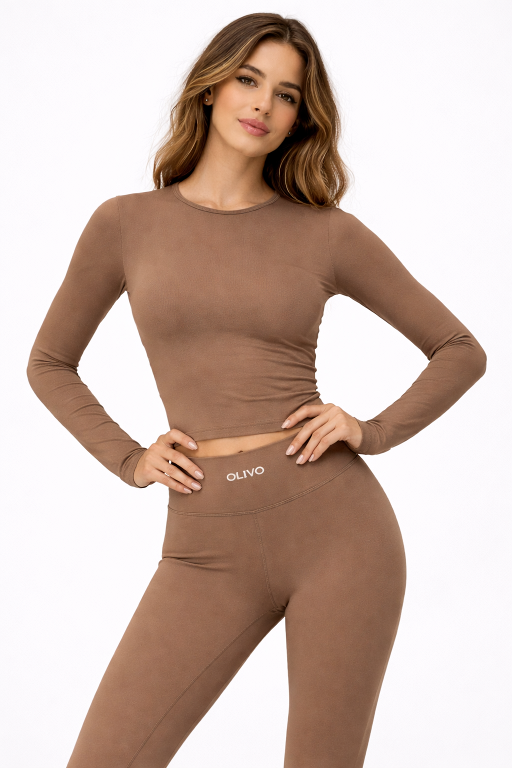 The minimalist design highlights the natural shape of the body without distraction, making it easy to style on its own or pair with matching leggings. Lightweight, breathable, and soft to the touch, this top is built for comfort that lasts all day.