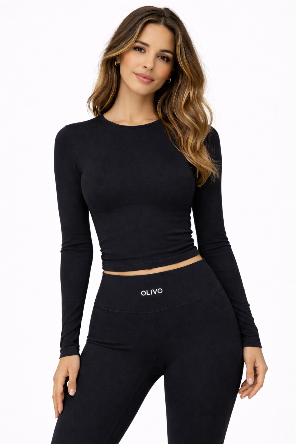 The minimalist design highlights the natural shape of the body without distraction, making it easy to style on its own or pair with matching leggings. Lightweight, breathable, and soft to the touch, this top is built for comfort that lasts all day.